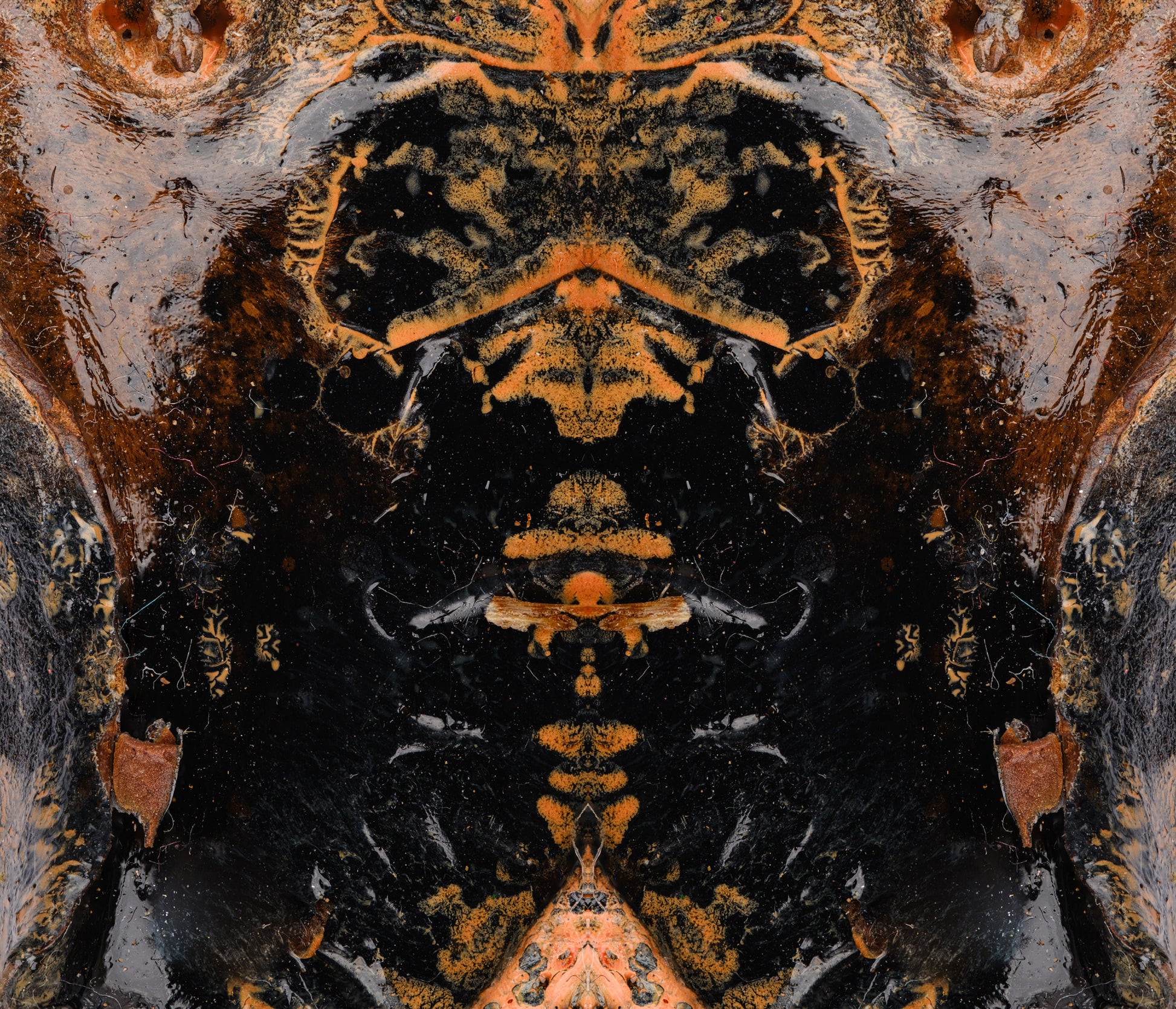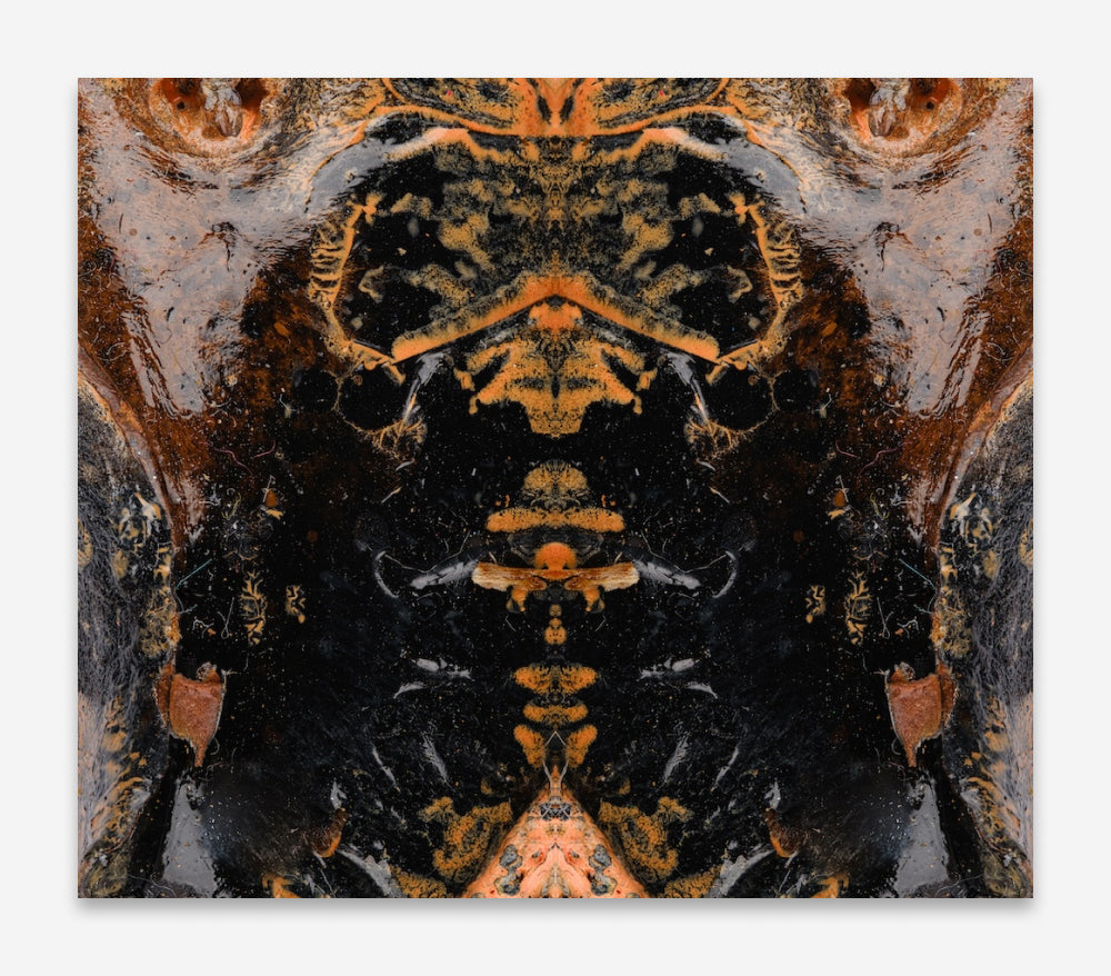 Mixed media digital print on canvas, which involves Kolanut painted with acrylic paint and metal foil.