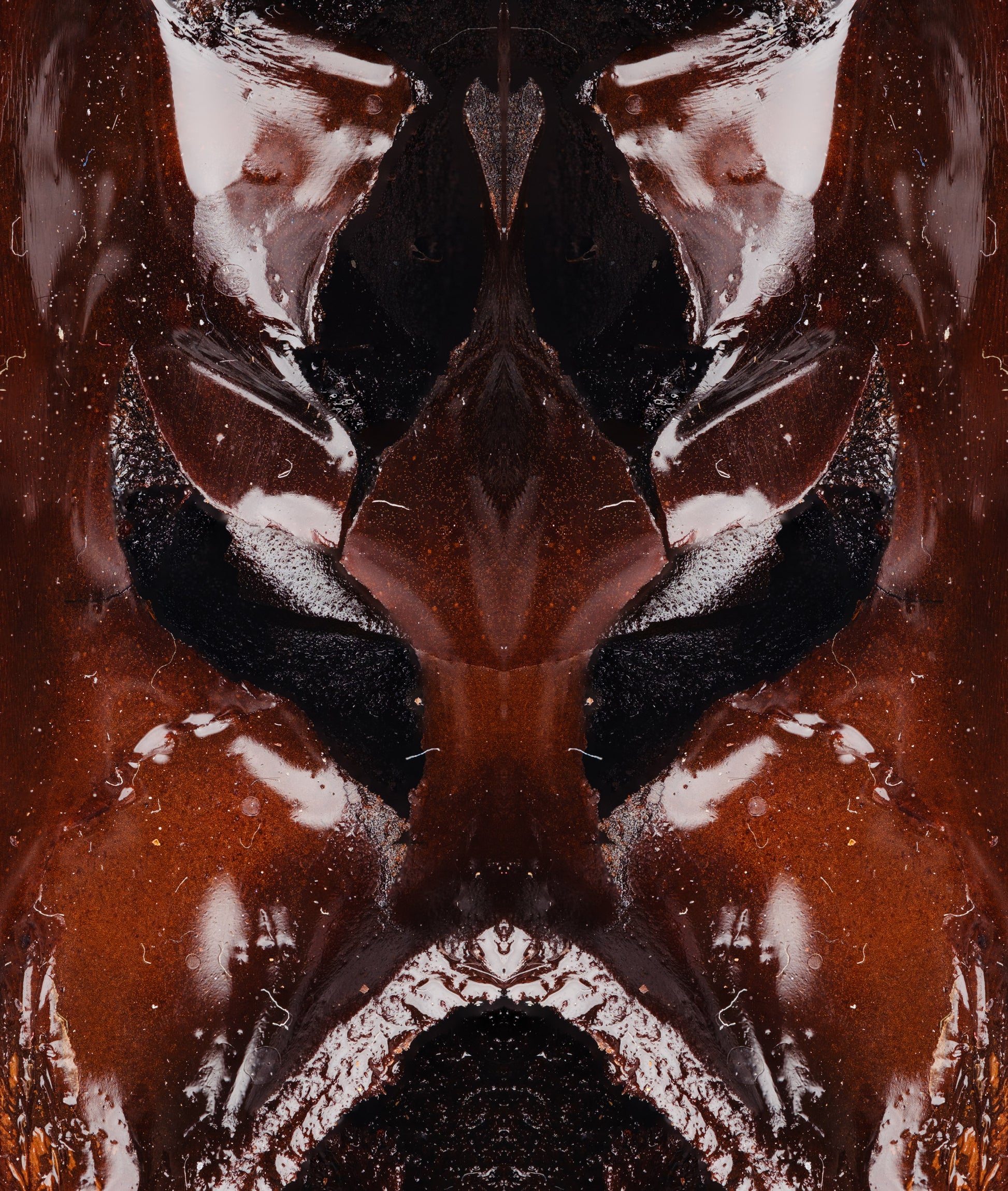 Mixed media digital print on canvas, which involves Kolanut painted with acrylic paint and metal foil.