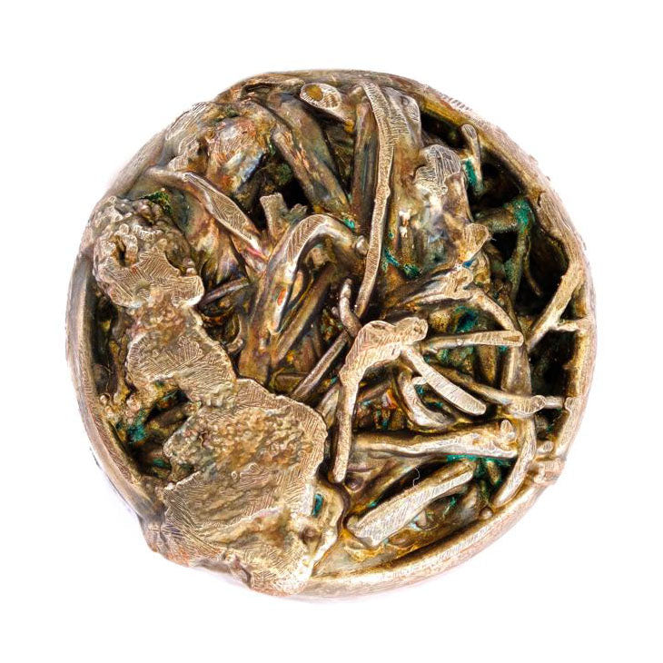 Framed print of a sculpture made from African sponge coated with copper.