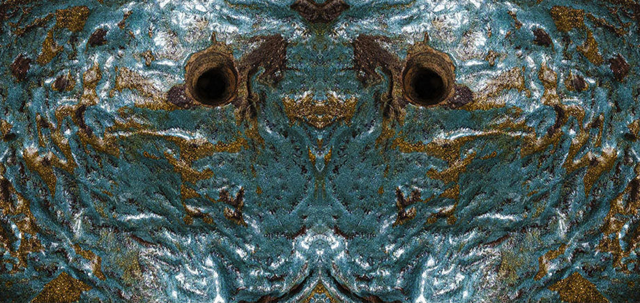 Mixed media digital print on canvas, which involves Kolanut painted with acrylic paint and metal foil.